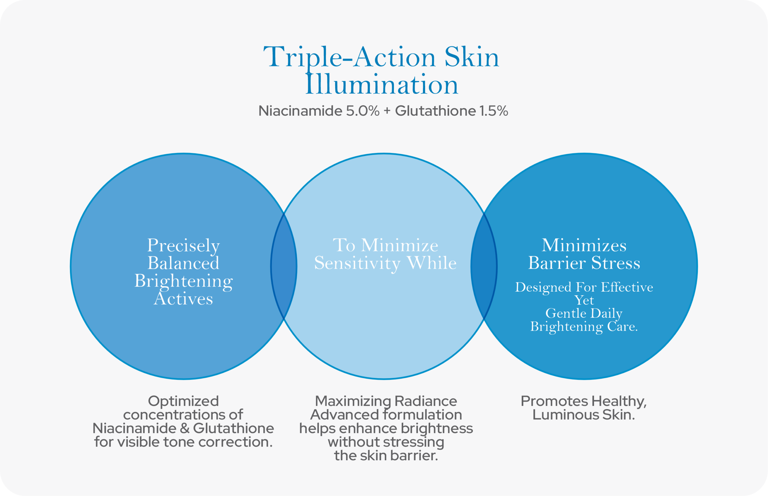 - Niacinamide 5.0% and Glutathione 1.5% work