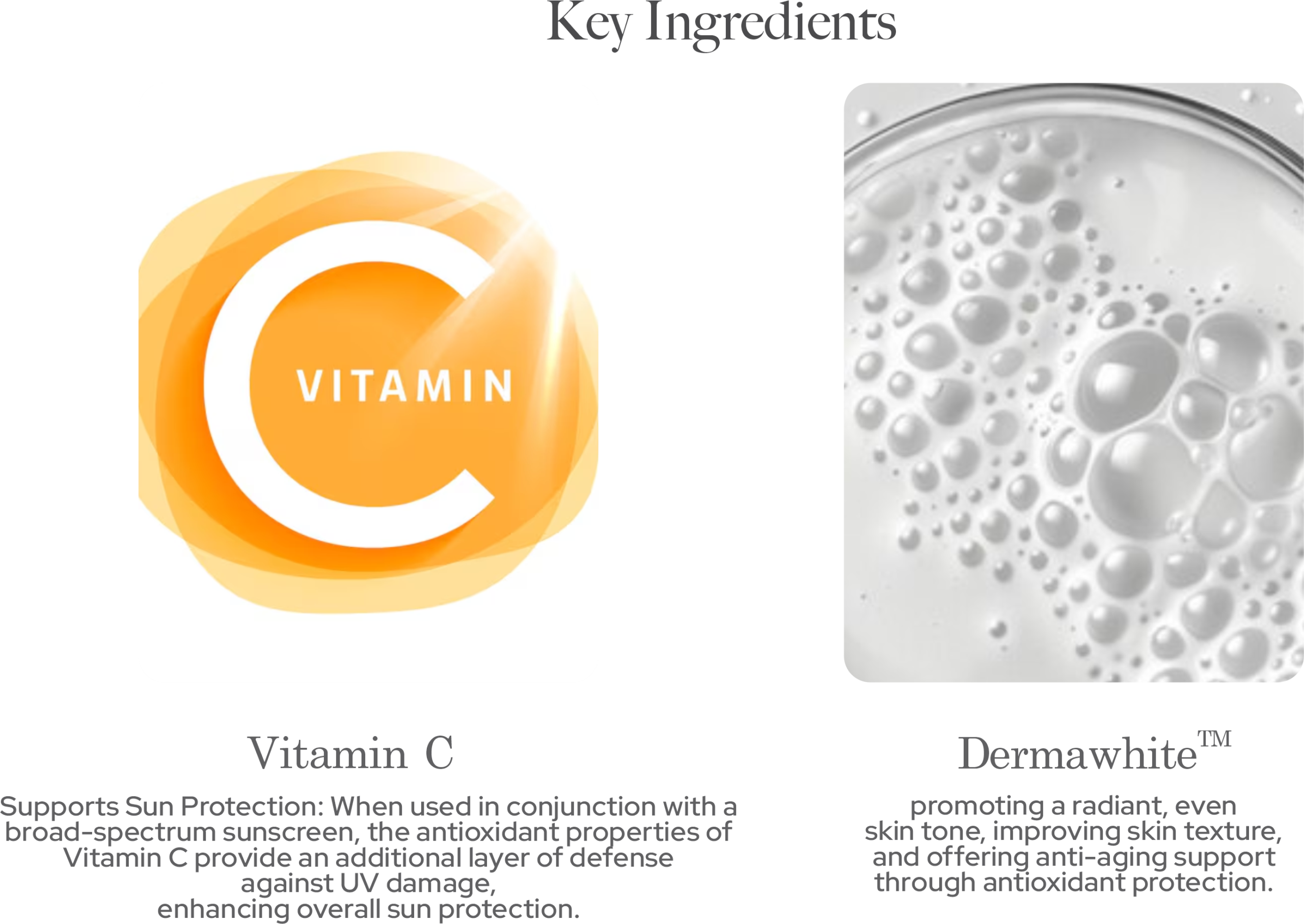 • Vitamin C deeply targets dullness and dark spots, helping to